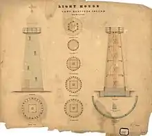 In 1872 plans were drawn for a new lighthouse,[2] and tenders were called.[7] The winning tender, for £749,[8] was by the brothers John and Jacob Rooney of Maryborough, which also constructed Sandy Cape Light, Cowan Cowan Point Light, Cape Capricorn Light, Cape Bowling Green Light[4] and Booby Island Light.[9] The lighthouse was established in 1873, the third to be erected in Queensland since its formation in 1859, following Bustard Head Light in 1869 and Sandy Cape Light in 1870.[2][10] By then, the guano mining operation has almost completely cleared the vegetation on the island.[10] This was made worse by a herd of goats which were imported for meat and milk, which ate all growing vegetation.[11] As the island had little topographical features to offer protection, to begin with, the station was completely unprotected from the powers of nature.[10]