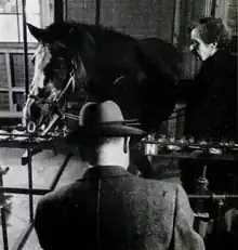 Lady was said to have predicted the outcome of boxing fights and political elections, and was consulted by the police in criminal investigations. The parapsychologist researcher J. B. Rhine investigated Lady's alleged abilities and concluded that there was evidence for extrasensory perception between human and horse.[2] The magicians and skeptical investigators Milbourne Christopher and John Scarne showed that Lady's prediction abilities resulted from Mrs. Fonda employing mentalism tricks and signaling the answers to Lady.[3][4]