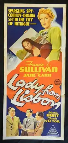 Lady from Lisbon is a 1942 British comedy film directed by Leslie S. Hiscott and starring Francis L. Sullivan, Jane Carr, Martita Hunt and Charles Victor.[1][2]