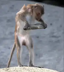 - ↑ Malaivijitnond, S.; Lekprayoon C; Tandavanittj N; Panha S; Cheewatham C; Hamada Y. (February 2007). "Stone-tool usage by Thai long-tailed macaques (Macaca fascicularis)". Am J Primatol. 69 (2): 227–33. doi:10.1002/ajp.20342. PMID 17146796. S2CID 24117181.