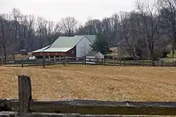 Lahr Farm is a historic home and farm located in Warwick Township, Chester County, Pennsylvania. It was originally owned by a wealthy Quaker ironmaster William Branson and part of his Reading Furnace estate.[2] The farm has three contributing buildings; the main house, bank barn, and wash hour or latchen. The house is a 2+12-story, four-bay by two-bay, fieldstone dwelling with a gable roof. The farm was inherited by Branon's grandson a wealthy ironmaster Samuel Van Leer. The Van Leer Family's original surname spelling was Von Lahr.[3] The farm remained in the Lahr family from 1834 to 1938.[4]