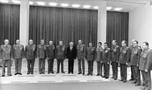 Lajos Czinege is in the fourth from right of Erich Honecker (in suit).