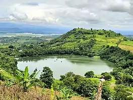 Lake Apo is a crater lake in Barangay Guinoyoran in the city of Valencia in Bukidnon province in the Philippines. It is located in a hilly area about 640 metres (2,100 ft) in elevation, about 11 kilometres (6.8 mi) WSW of the city poblacion (town center). Lake Apo was awarded the cleanest inland body of water in Northern Mindanao Region (Region X) in the late 1990s. The green body of water has an estimated area of 24 hectares (59 acres) with maximum depths reaching up to 26 m (85 ft).[1]