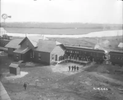 In November, the construction headquarters moved from Gladstone to Dauphin,[17] and work ceased for the season when the 163-kilometre (101 mi) line reached its temporary terminus at Sifton (which activated the federal transportation contract).[18][19] The destination is sometimes mistakenly reported as Dauphin, an alternative projection.[20][21] Government inspection and the handover to the LMR occurred in December.[22] That month, David Blyth Hanna was appointed superintendent, and Theodore Arthur Burrows land commissioner for the railway.[23] Burrows was Clifford Sifton's brother-in-law, as was S. Jacks, who was later appointed as Mackenzie and Mann's purchasing agent.[24]