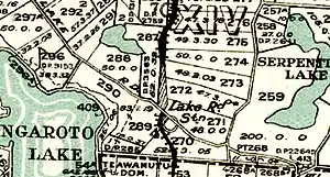 By February 1880 the contractor, Mr Fallon, had laid the rails from Ōhaupō to a point south of Lake Road.[4] The line opened to Te Awamutu on Thursday 1 July 1880.[5] Lake Road wasn't shown in the original timetable,[6] but, in 1880, there was pressure from local farmers for a station between Ōhaupō and Ngaroto.[7]