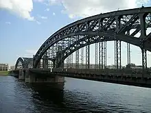 The first permanent bridge of bricks and stones across the main waters of Bolshaya Neva river was the Lieutenant Schmidt Bridge, built from 1843 to 1850, and opened in 1850.