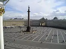 The Palace Square is dominated by the Alexander Column (1830–1834), the tallest of its kind in the world and so nicely set that no attachment to the base is needed. A monument to Generalissimo Suvorov, represented as a youthful god of war, was erected in 1801 on the Field of Mars, formerly used for military parades and popular festivities. Saint Isaac's Square is graced by the Monument to Nicholas I (1856–1859), which was spared by Bolshevik authorities from destruction as the first equestrian statue in the world with merely two support points (the rear feet of the horse).