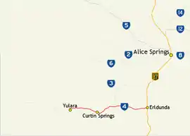 2. Department of Transport (April 1998). "Map of all NT Roads" (PDF). Northern Territory Government. Archived from the original (PDF) on 5 May 2013. Retrieved 13 January 2014.