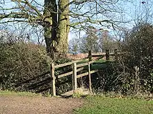 The wood was part of the 623 acres (252 ha) estate of the Guise family.[1] The land had been granted to their ancestor Anselm de Gyse by John of Burgh, a son of Hubert de Burgh, 1st Earl of Kent, in 1274.[2] The River Leadon formerly split into two channels, one of which ran by the eastern boundary of the woodland, this channel was diverted in 1867 and has since silted up.[3] Sir Anselm Guise sold the estate in 1921 but retained ownership of the wood, which he then donated to Gloucester County Borough Council.[1] This was as a mark of the Guise family's long association with the city.[2]