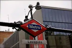 Lavapiés ([ˌlaβaˈpjes]) is a station on Line 3 of the Madrid Metro, serving the Lavapiés neighbourhood. It is located in fare Zone A.[1]