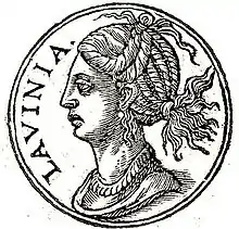 In Roman mythology, Lavinia (/ləˈvɪniə/ lə-VIN-ee-ə; Latin: [ɫaːˈu̯iːnia]) is the daughter of Latinus and Amata, and the last wife of Aeneas.