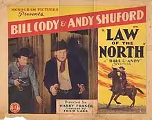 Law of the North is a 1932 American Western film directed by Harry L. Fraser and starring Bill Cody, Andy Shuford and Nadine Dore.[1] It was the penultimate Monogram Pictures eight-film Western film series "the Bill and Andy series", with Bill Cody co-starring with child actor Andy Shuford.