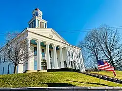 The original building was built between 1850 and 1855, and is a two-story, six-bay by three-bay Greek Revival-style structure. It features a portico with six Ionic order columns and a cupola. Major additions to the original structure were built between 1885 and 1886, in 1914 (extended in 1939), and between 1943 and 1944. A small addition to connect the 1885-1886 and 1914-1939 additions was built in 1947.[2]