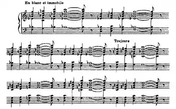 Opening of the first Prelude from Le Fils des étoiles, with its harmonically innovative "stacks" of fourths