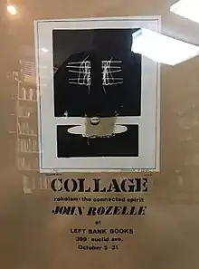 The painter and collagist John Rozelle exhibited work at Left Bank Books in 1980. The artist created an announcement for his show at the store. Rozelle went on to teach at the School of the Art Institute of Chicago.[20]