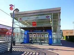 Leganés Central ([leɣaˈnes θenˈtɾal], "Central Leganés") is a station on Line 12 of the Madrid Metro. It is located in fare Zone B1. The station offers connection to Cercanías Madrid via Leganés railway station.[1]