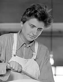 Lenore Thomas at work on a sculpture for the Resettlement Administration (1936)