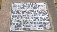 The State of Tlaxcala has named an award for teachers with 30 years of service the 'Profa. Leonarda Gómez Blanco de Hernández' Silver Medal.[3] There are 5 elementary and secondary schools,[4] a teacher's college,[5] and monuments[6] in the state that bear her name.