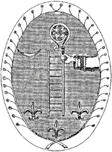 It was also at this time that the appointment of abbots in commendam began in Les Écharlis: from that point on the abbot came from outside the abbey and existed outside of its rules. Initially such abbots were members of the secular clergy, often a bishop; but increasingly the commendatory abbot was chosen by the king from among the ranks of the nobility, as result of the Concordat of Bologna signed by King Francis I and Pope Leo X.[26] The first commendatory abbot of Les Écharlis was Jean de Langeac, bishop of Avranches and later of Limoges.[27] He undertook a number of major projects at Les Écharlis, and, according to Edmond Régnier, built a new abbey, much smaller than the first on a site measuring 32 metres by 10 metres (as opposed to 75 metres by 20 metres for the medieval abbey) and on the opposite side of the cloister.[28] However, the good relations Jean de Langeac had with the monks were an exception. The subsequent commendatory abbot, Guillaume Pellissier, was so hated by his monks that they brought him before the courts.[29]