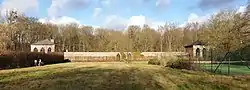 During the 1970s, the two orangeries, all that remains of the monumental greenhouses, were converted into dwellings by the architect Édouard Carlier. The east side was completely opened on its west facade in a modernist-brutalist style, and boldly reinforced by eight weathering steel pillars.