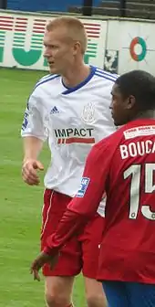 ![]() Mackin playing for York City in the 2009 FA Trophy Final | |||