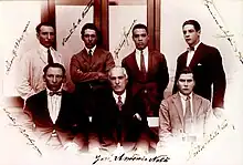 One of the committed civilians, Leonel Rocha, remembered Lopes' confidence: "there was no well-prepared revolution like this; If we miss half, we still have too much".[15] A civilian, Rocha was one of the veteran revolutionaries committed to the revolt, and therefore "incorrigible", in the words of Borges de Medeiros.[11] Another veteran, Honório Lemes, did not fight after his defeat in 1925,[11] but his nephew Alfredo supported the life in exile of the sailors of the battleship São Paulo who revolted in 1924 and took part in the new uprisings.[16]