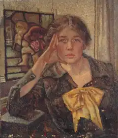 She was born in Chiswick in London in 1886,[2] one of two daughters of Margaret, an Irish comedienne, and William James Lancaster, a theatrical manager.[3] Her older sister, Theodora Margaret Sothern Lancaster (1885-1977) married the sculptor Edmund Thomas Wyatt Ware (1883-1960).[4] Her aunt, after whom she was named, was the actress and humorous cartographer Lilian Lancaster. Primarily a figure and still-life painter,[1] Lancaster studied at the Westminster School of Art and the Slade School of Fine Art (1906–10) where her teachers included Henry Tonks and Frederick Brown. She was a student at the Royal Academy Schools (1910–14) where she studied under Walter Sickert. Her son, the architect Stephen Gardiner later recalled that his mother was Sickert's favourite pupil, and that he gifted her one of his paintings, Reverie, a half-length nude on a bed,[5] painted during his Camden Town period. She was influenced by the French Impressionists, with Renoir being a particular influence on her own work, and by the works of Vincent van Gogh.[6]