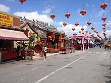 A festival, the Chao Mae Lim Ko Niao Festival (Thai: งานสมโภชเจ้าแม่ลิ้มกอเหนี่ยว), is held every year in Pattani, starting on the 14th day of the Chinese New Year. The following day on the 15th, the wooden image of Lim Ko Niao and 17 other statues of various deities worshipped at this temple as well as others from the neighbourhood are carried by the locals in a grand procession.[10] The images are carried across the Pattani River for bathing in the water, and later in the day, the carriers also walked over fire.[9][11]