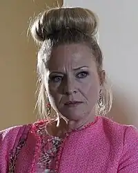 Along with Dyer, Bright was nominated for "Best On-screen Partnership" at The British Soap Awards 2014 for the relationship between Mick and Linda.[30] However, they lost out to David Neilson and Julie Hesmondhalgh, who play Roy and Hayley Cropper respectively in Coronation Street.[31] Kate White from Inside Soap was pleased to see Linda's backstory explored, saying "Now we know a bit about Linda's past and what made her a control freak, she's finally a sympathetic character. We liked her already, but we love her now!"[32] Bright won the awards for "Best Actress" and "Best Dramatic Performance" at The British Soap Awards 2015.[33] In August 2017, Bright and Dyer were longlisted for Best Partnership and the showdown between Mick and Linda was longlisted for Best Show-Stopper.[34] Neither nomination made the viewer-voted shortlist.[35] Linda's pairing with Mick came in second place in the "Best Soap Couple" category at the 2018 Digital Spy Reader Awards with 10.6% of the total votes.[36] In a 2021 Radio Times poll, Mick and Linda were voted as the joint sixth "soap pub landlord", receiving 6% of the votes.[37]