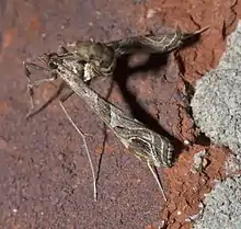 Lineodes interrupta is a moth in the family Crambidae. It was described by Zeller in 1873.[1] It is found in Mexico[2] and the United States, where it has been recorded from Florida, Louisiana, Oklahoma and Texas.