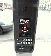 On April 30, 2014, the New York City Department of Information Technology and Telecommunications (DOITT) requested proposals for how to convert the city's over 7,000 payphones into a citywide Wi-Fi network.[7][8] A new competition was held, with the winner standing to receive a 12-year contract to maintain up to 10,000 communication points.[7][8][13] The communication points would tentatively have free Wi-Fi service, advertising, and free calls to at least 9-1-1 (the emergency service) or 3-1-1 (the city information hotline).[2][3]