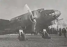 On 21 October 1938, it was specified that all production LeO 45 aircraft were to be equipped with Gnome-Rhône engines in place of the originally envisioned Hispano-Suiza powerplants.[11] However, as a result of this demand, there was considerable delays in the delivery of the first production aircraft. During late November 1938, the first LeO 45 was on static display at the Paris Air Show; it performed its maiden flight on 24 March 1939.[11] On 28 April 1939, the second production aircraft conducted its first flight.[11] Further production issues were encountered as a result of supply issues with Gnome-Rhone engines and associated propellers; as a result, it was decided to fit the type with Ratier-built propellers instead, which reduced the maximum speed from 500 km/h to 470 km/h.[11]