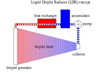 The liquid droplet radiator (LDR) or previously termed liquid droplet stream radiator is a proposed lightweight radiator for the dissipation of waste heat generated by power plants, propulsion or spacecraft systems in space.
