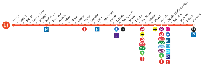 - Bolueta - link with EuskoTren to Bermeo and Donostia.