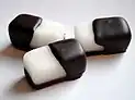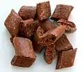 Bremer Kluten Pieces of peppermint fondant, half covered in dark chocolate, about the size of two sugar cubes side by side.