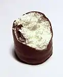 Schokokuss Sweetened egg-white foam covered with chocolate. Previous names originate from black people's skin color.