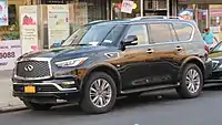 QX80 | 2014 | - | 2018 | Full-size luxury SUV that shares its platform with the Nissan Patrol/Armada. Formerly the QX until 2014. | |