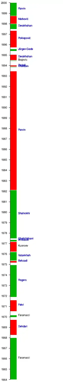 | 1 | Parviz Dehdari [B]⚱ | 5 April 1968 | 22 August 1969 | 1 year, 47 days |