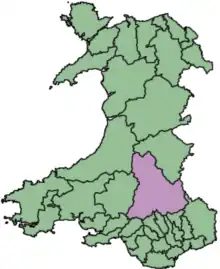 SSSIs in the UK are notified using the concept of an Area of Search (AOS), an area of between 400 km2 (150 sq mi) and 4,000 km2 (1,500 sq mi) in size.[1] The Areas of Search were conceived and developed between 1975 and 1979 by the Nature Conservancy Council (NCC), based on regions created by the Local Government Act 1972.[2] Whereas England had its Areas of Search based on 46 counties, those in Wales were based on a combination of the counties and smaller districts. In 1974, Wales was divided into 8 counties, with 37 districts. The NCC created 12 Welsh Areas of Search; they mostly follow county borders, but the larger counties (Dyfed, Powys and Gwynedd) were divided into multiple Areas using district borders. Mid and South Glamorgan were merged into a single AOS, whilst Llanelli district was included in the West Glamorgan AOS.