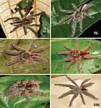 1. "Family: Theraphosidae Thorell, 1869". World Spider Catalog. Natural History Museum Bern. Retrieved 2019-12-08.
