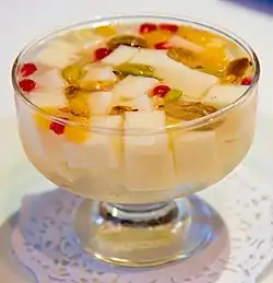 Pudding, dairy | Turkish milk pudding made with fine strands of chicken breast |