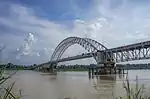 ![]() | 2 | Ampera Bridge | 1,177 m (3,862 ft) | Beam bridge Steel Vertical-lift bridge | Road bridge Musi River | 1965 | Palembang 2°59′30.4″S 104°45′48.5″E / 2.991778°S 104.763472°E | South Sumatra | [3] |