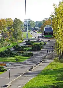[1] This article is a List of gondola lifts around the world. A gondola lift has cabins suspended from a continuously circulating cable whereas aerial trams simply shuttle back and forth on cables. (Both are cable cars, and both are aerial lifts which also includes chairlifts.) For aerial tramways, see the List of aerial tramways. For funitels, see the Funitel article.