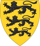 | 1181 | Frederick VI, Duke of Swabia: Frederick VI is known to have displayed a lion rampant from 1181. His reitersiegel, dated 1188, shows a shield charged with two lions rampant. Frederick's younger brother, Philip of Swabia used three lions passant as seen on a seal dated 1197. The three lions are later (after 1220) are used as the arms of the Staufer after 1220, and later still as the coat of arms of Swabia.[18] | ||