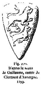 William, Count of Clermont and Montferrand: DA {{#}} 383. His descendants will take the title of dolphin of Auvergne and will affix it to their shield. |
