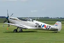 - Spitfire LF Mk IXc MK732 (PH-OUQ). Operated by The Historic Flight of the Royal Netherlands Air Force (Koninklijke Luchtmacht Historische Vlucht) and based at Gilze-Rijen. Built in 1943, it saw action during D-Day. Following the restoration to flight, it initially carried the air force (Klu) markings H-25. Following this it was painted in the scheme it wore when serving with No. 485 Squadron RNZAF as OU-U, named 'Baby Bea V', but now wears an all-over silver scheme 3W-17 of the Royal Netherlands Air Force.[91]