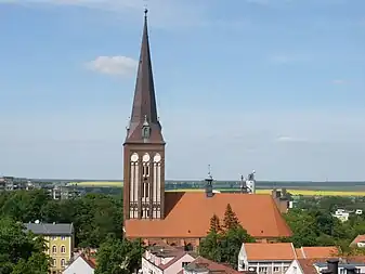 | 100.0 m (328 ft) | H<75 | Marienkirche, Anklam | Lutheran | 53°51′21″N 13°41′03″E / 53.855798°N 13.684298°E | 1888 | Anklam | destroyed in an air-raid in 1943, actual height of tower: 64 metres | |