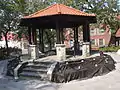 Parc du Portugal is located on Saint Laurent Boulevard between Marie-Anne Street and Vallières Street. The park with azulejos was founded in 1953,[2] created by landscape architect Carlos R. Martinez to honour the city's Portuguese community. It was renovated in 2003 to mark the fiftieth anniversary of the Portuguese community in Montreal.[3] It features a small drinking fountain by artist Rui Dias. Prominent Canadian poet and musician Leonard Cohen lived in a home adjacent to the park, on St. Dominique Street, for much of his life.