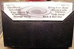 It is estimated that 10 cassette copies were sent out with a J-card insert depicting a swirling Union Jack and the now famous Oasis logo designed by Tony French.[2] More cassettes were handed out without the picture sleeve, but with instead, a handwritten set of notes.