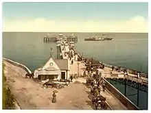 Towards the end of 1907, the owners announced intentions through an application to the Board of Trade to widen the pier, extend it by sea dredging and to construct pavilions and a tramway.[11] By 1908, the pier would often be overcrowded during the summer season, causing inconvenience to passengers boarding and alighting from steamboats.[12]